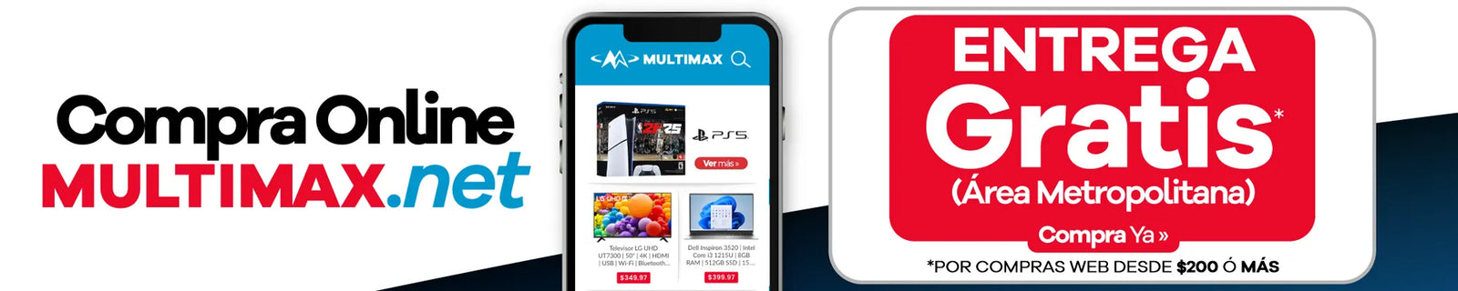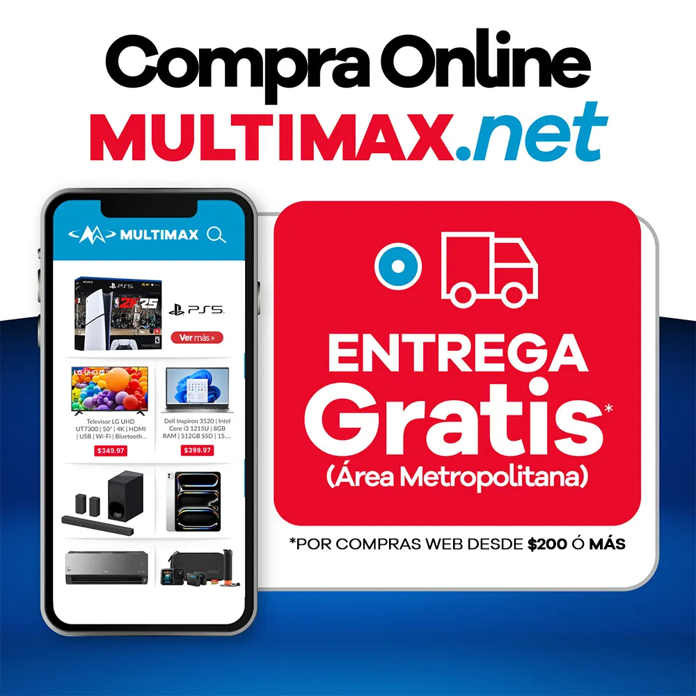 Entrega Gratis Área Metropolitana: La entrega gratis es válida sólo en el área metropolitana. La entrega se realizará en días hábiles para compras de $200 o más realizadas sólo en multimax.net. La entrega de línea blanca se realiza en un plazo de 5 a 7 días hábiles. No aplica para días feriados ni zonas rojas.